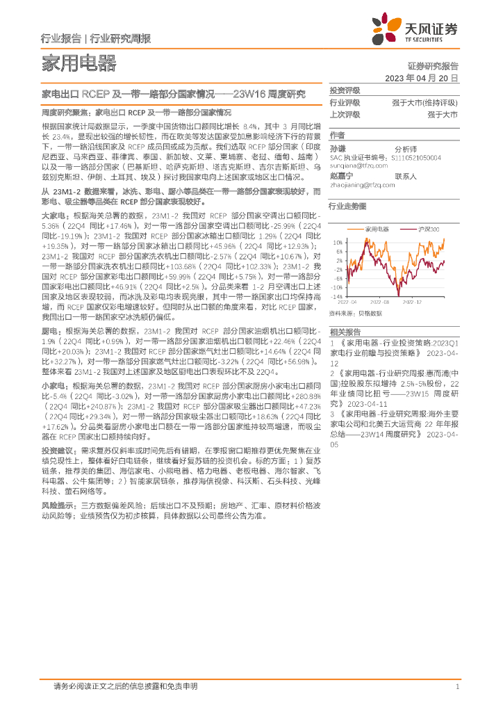 天风证券:家用电器23W16周度研究:家电出口RCEP及一带一路部分国家情况.pdf
