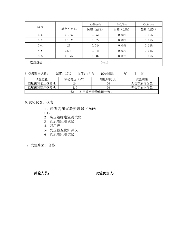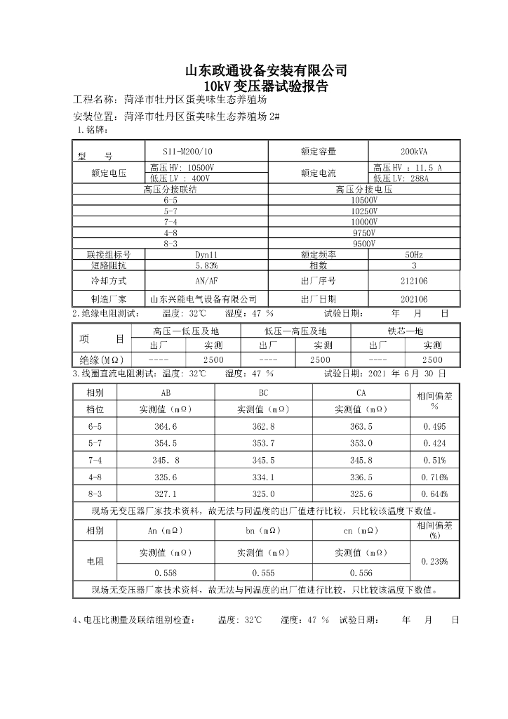 变压器施工成套试验报告模板.doc