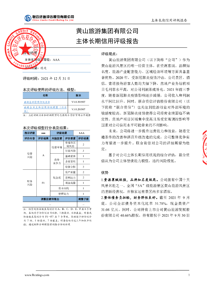 联合资信:黄山旅游集团有限公司2021年主体评级报告.pdf
