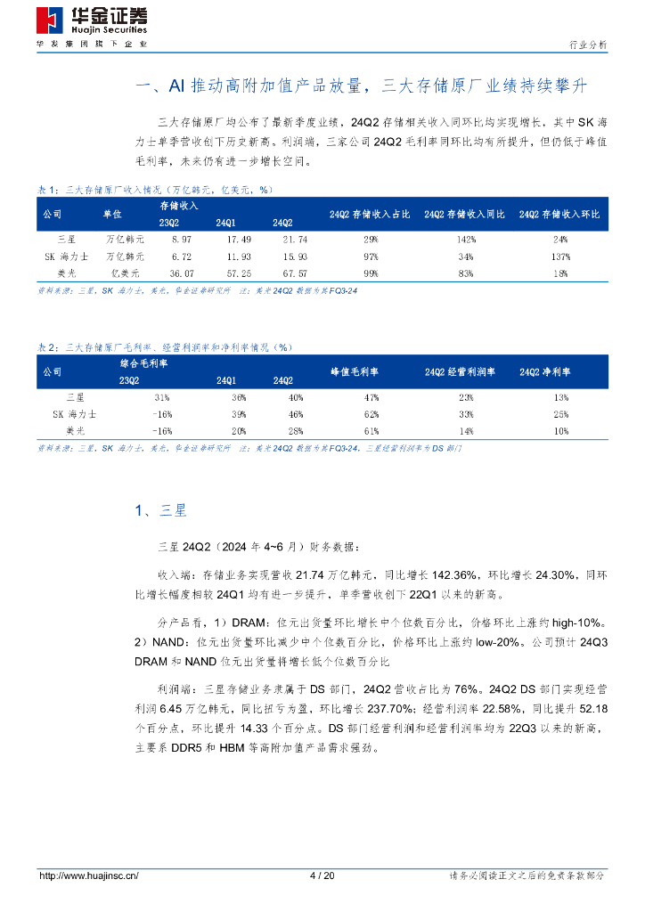 华金证券:半导体:AI推动高附加值产品放量,三大存储原厂业绩持续攀升.pdf
