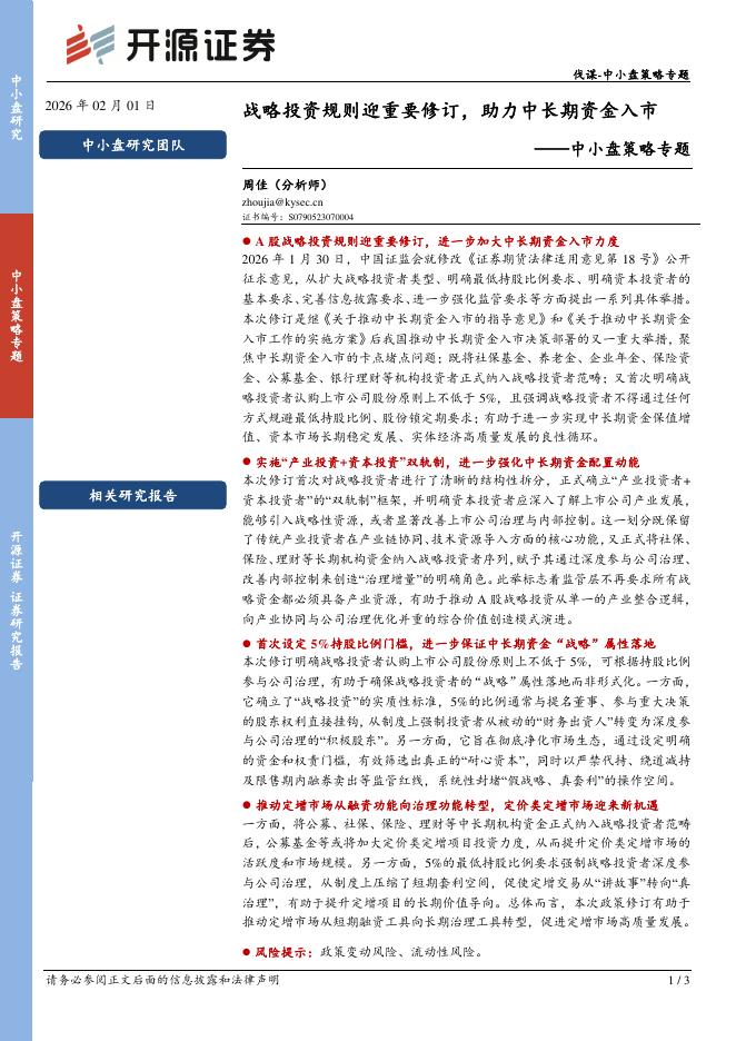 开源证券:中小盘策略专题:战略投资规则迎重要修订,助力中长期资金入市-260202.pdf