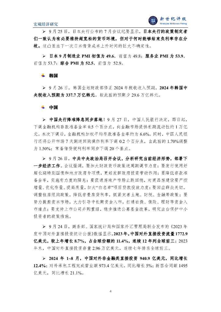 新世纪评级:OECD上调世界经济增长预期 中国央行降准降息同步落地——全球宏观经济周报(2024/9/21-9/27).pdf