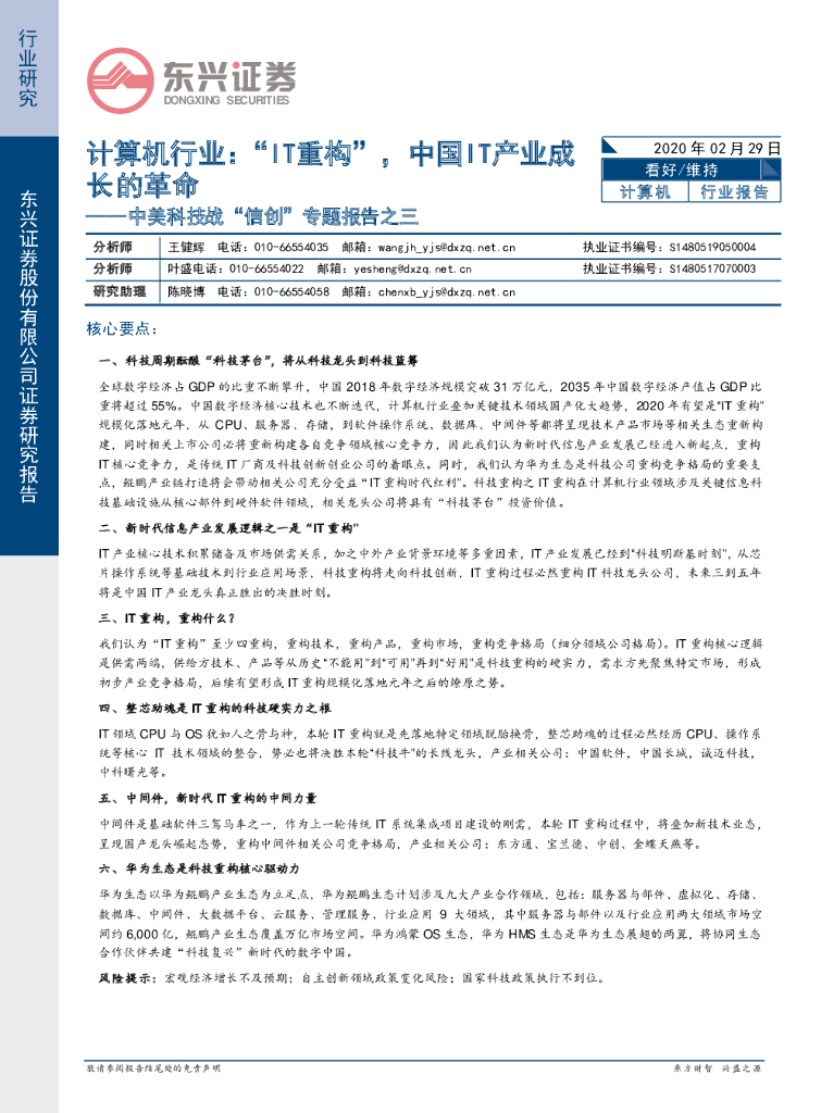 东兴证券:中美科技战“信创”专题报告之三:计算机行业:“IT重构”,中国IT产业成长的革命.pdf
