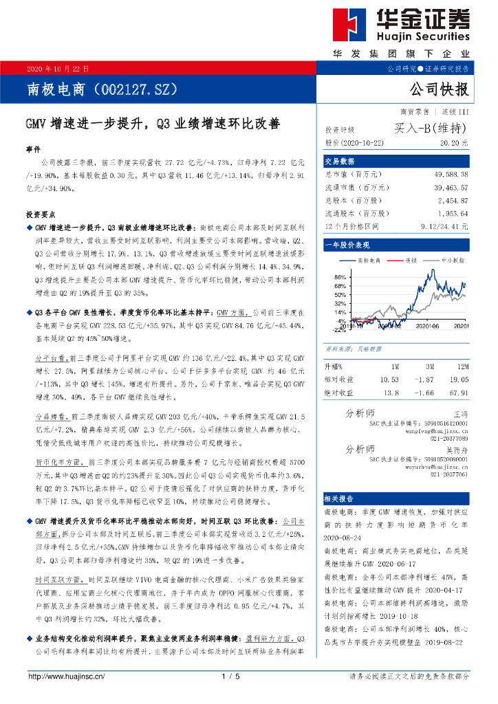 华金证券:南极电商(002127)-GMV增速进一步提升,Q3业绩增速环比改善.pdf
