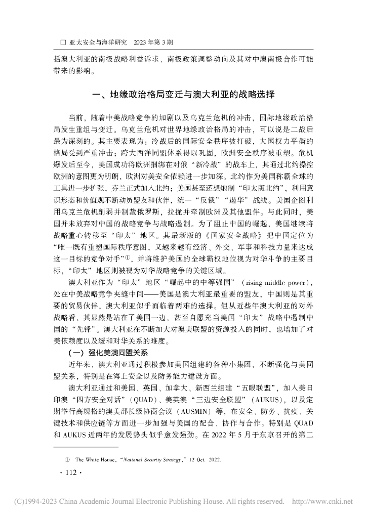 亚太安全与海洋研究:地缘政治变局与澳大利亚南极政策新动向解析-2023年第3期(总第153期).pdf