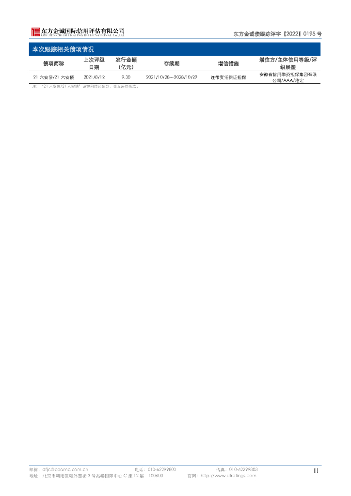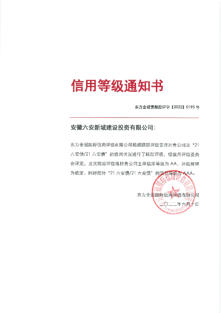 东方金诚:安徽六安新城建设投资有限公司主体及“21六安债21六安债”2022年度跟踪评级报告 (2).pdf