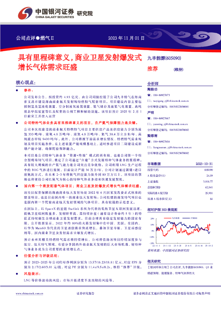 中国银河:九丰能源(605090)-具有里程碑意义,商业卫星发射爆发式增长气体需求旺盛.pdf