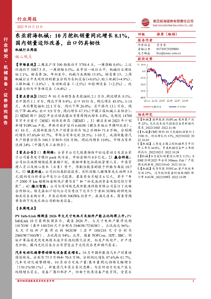 东亚前海证券:东亚前海机械:10月挖机销量同比增长8.1%,国内销量边际改善,出口仍具韧性.pdf