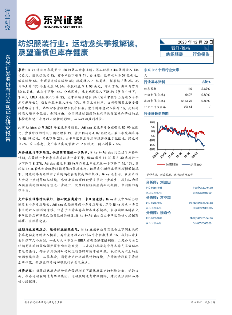 东兴证券:纺织服装行业:运动龙头季报解读,展望谨慎但库存健康.pdf
