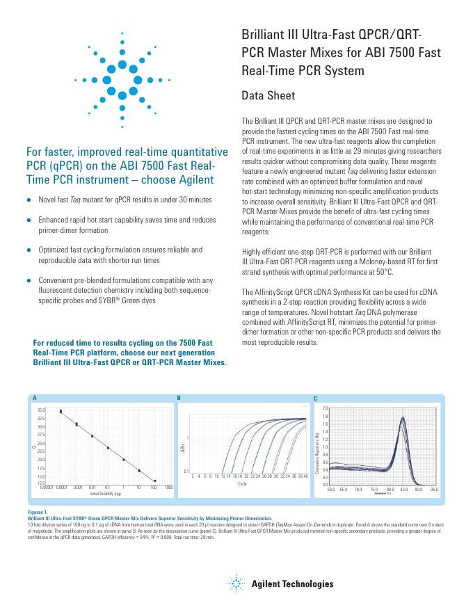 Agilent Brilliant III Ultra-Fast QPCR/QRT- PCR Master Mixes for ABI 7500 Fast Real-Time PCR System 数据手册.pdf