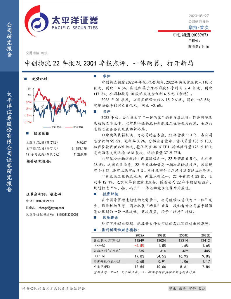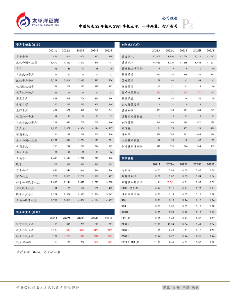太平洋证券:中创物流22年报及23Q1季报点评,一体两翼,打开新局.pdf
