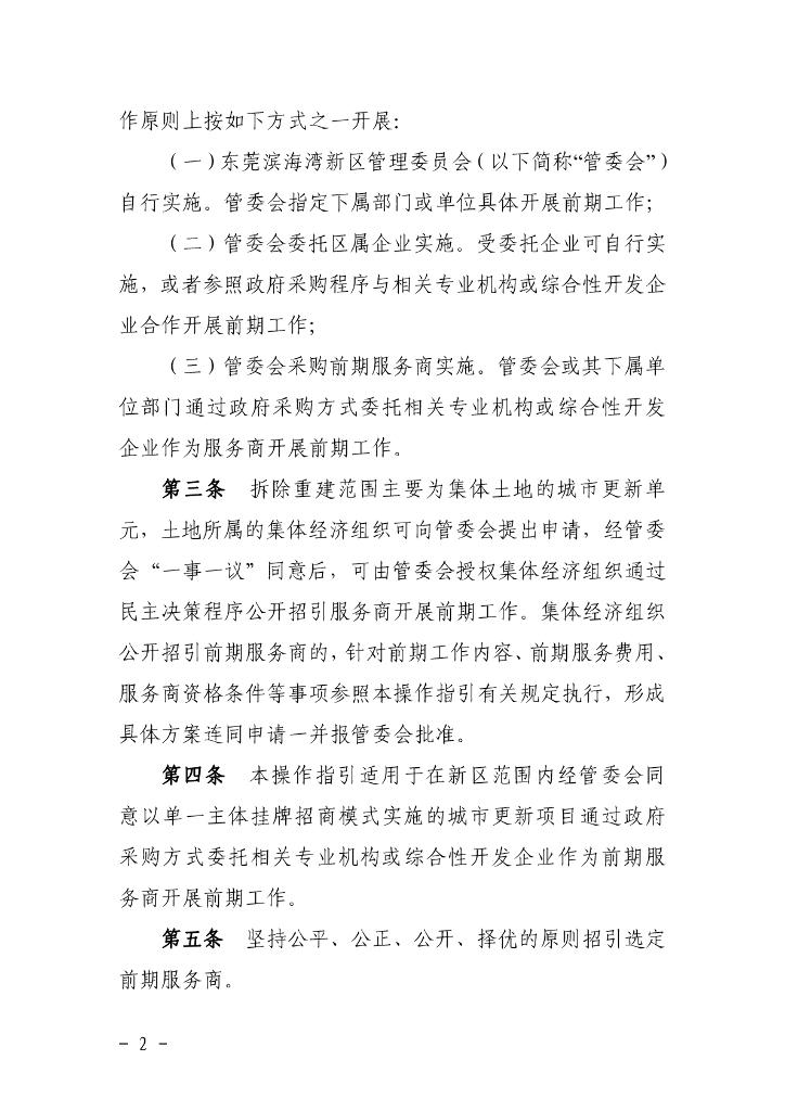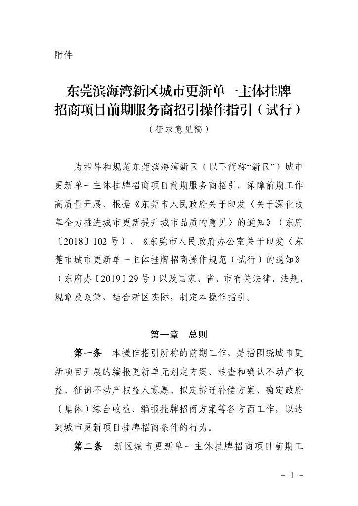 东莞滨海湾新区城市更新单一主体挂牌招商项目前期服务商招引操作指引(试行)(征求意见稿).pdf