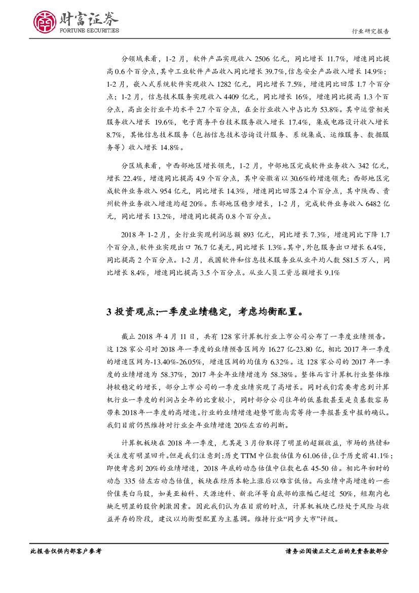 财富证券:计算机行业月度报告:一季度业绩稳定增长,建议均衡配置.pdf
