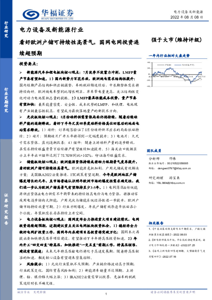华福证券:电力设备及新能源行业:看好欧洲户储可持续性高景气,国网电网投资连续超预期.pdf
