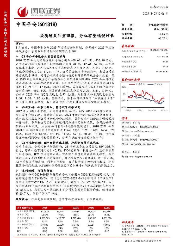 国联证券:中国平安(601318)-提质增效注重回报,分红有望稳健增长.pdf