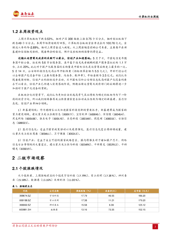 西南证券:计算机行业周报:招标陆续启动,信创产业加速落地.pdf