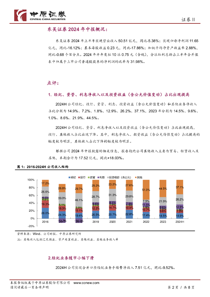 中原证券:东吴证券(601555)-2024年中报点评:业绩虽有波动但仍呈现出较强的韧性.pdf