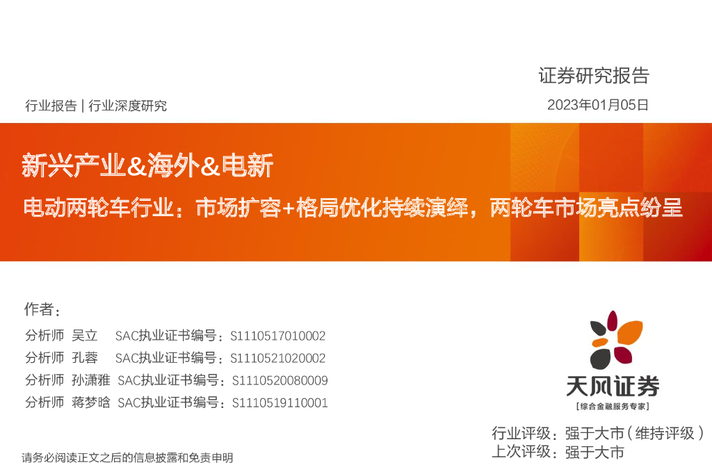 天风证券:新兴产业&海外&电新:电动两轮车行业:市场扩容+格局优化持续演绎,两轮车市场亮点纷呈.pdf