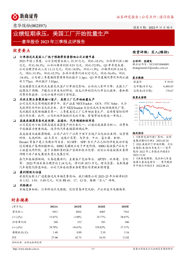 浙商证券:意华股份2023年三季报点评报告:业绩短期承压,美国工厂开始批量生产.pdf
