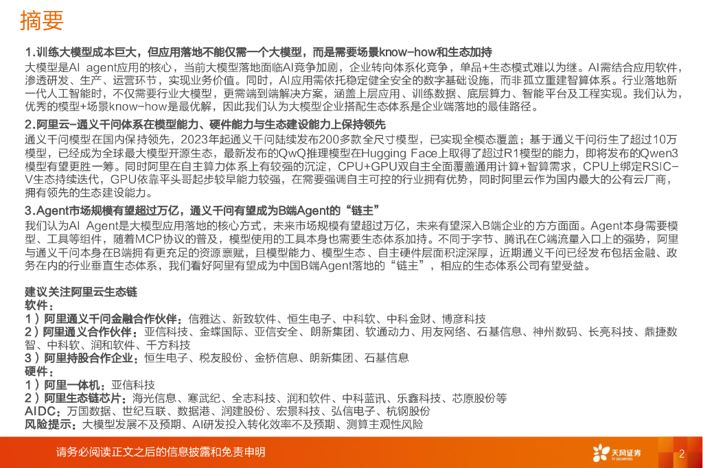 天风证券:计算机行业专题研究:自主芯片+底层模型+TOB生态共筑阿里AI云生态领军地位.pdf
