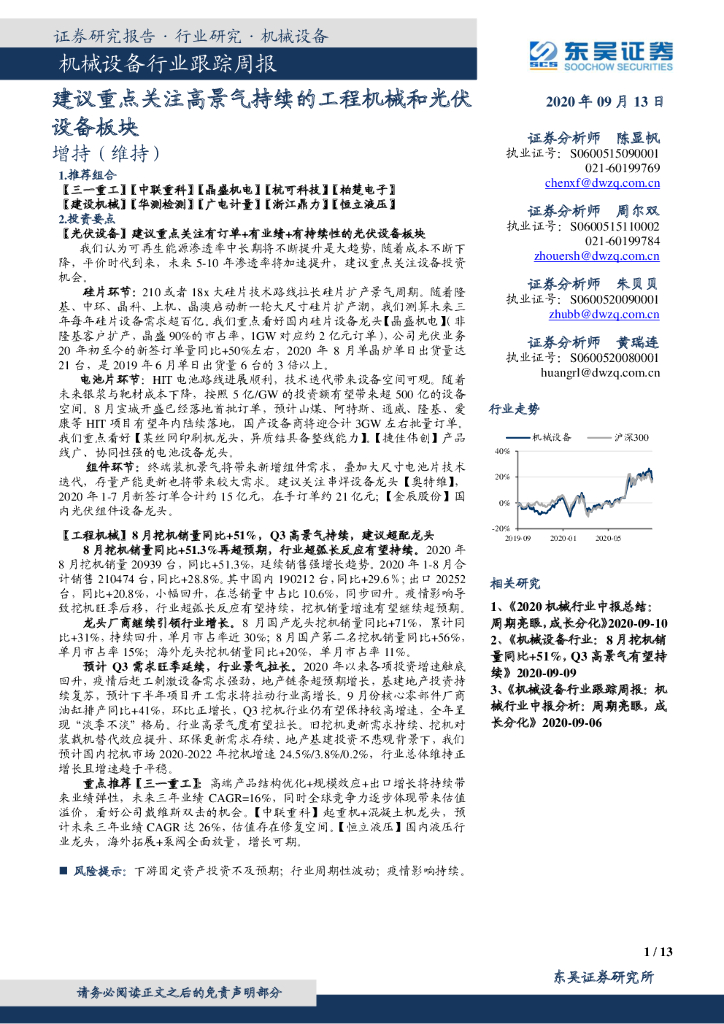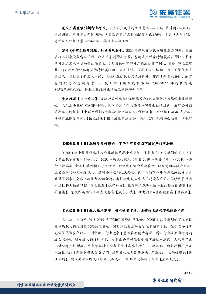 东吴证券:机械设备行业跟踪周报:建议重点关注高景气持续的工程机械和光伏设备板块.pdf