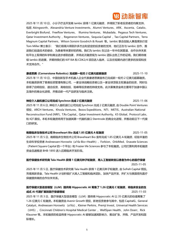 动脉智库:2025年11月全球医疗健康领域投融资月报.pdf