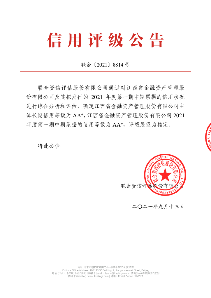 联合资信:江西省金融资产管理股份有限公司2021年度第一期中期票据信用评级报告.pdf
