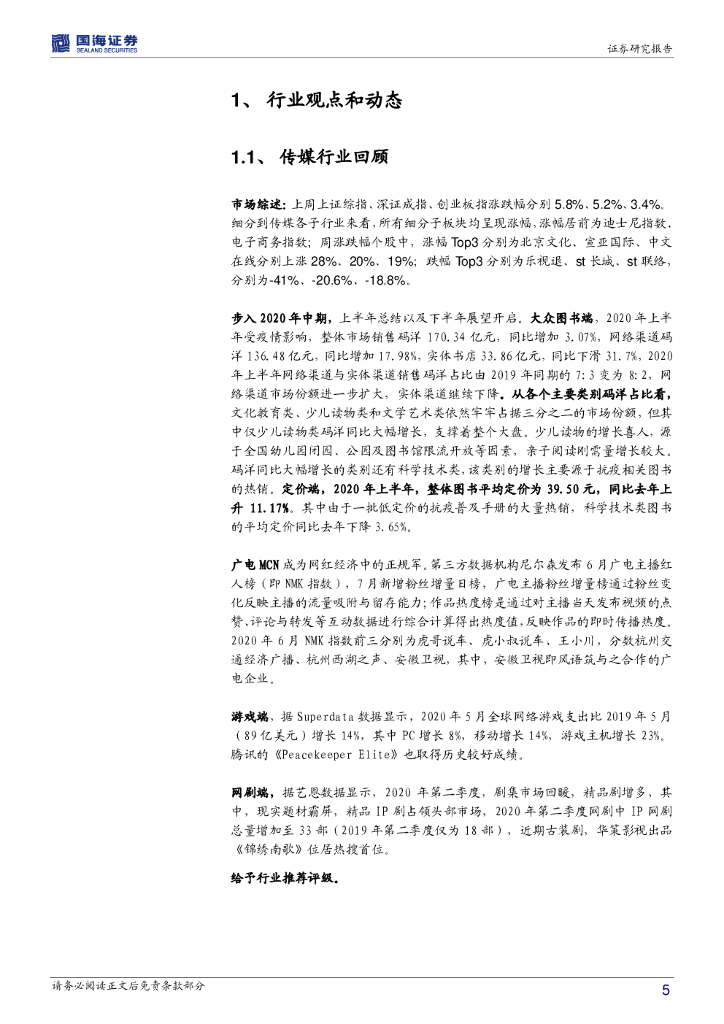 国海证券:传媒行业周报:2020上半年图书码洋线上增17.89% 关注大众图书与字节跳动产业链及头部院线.pdf