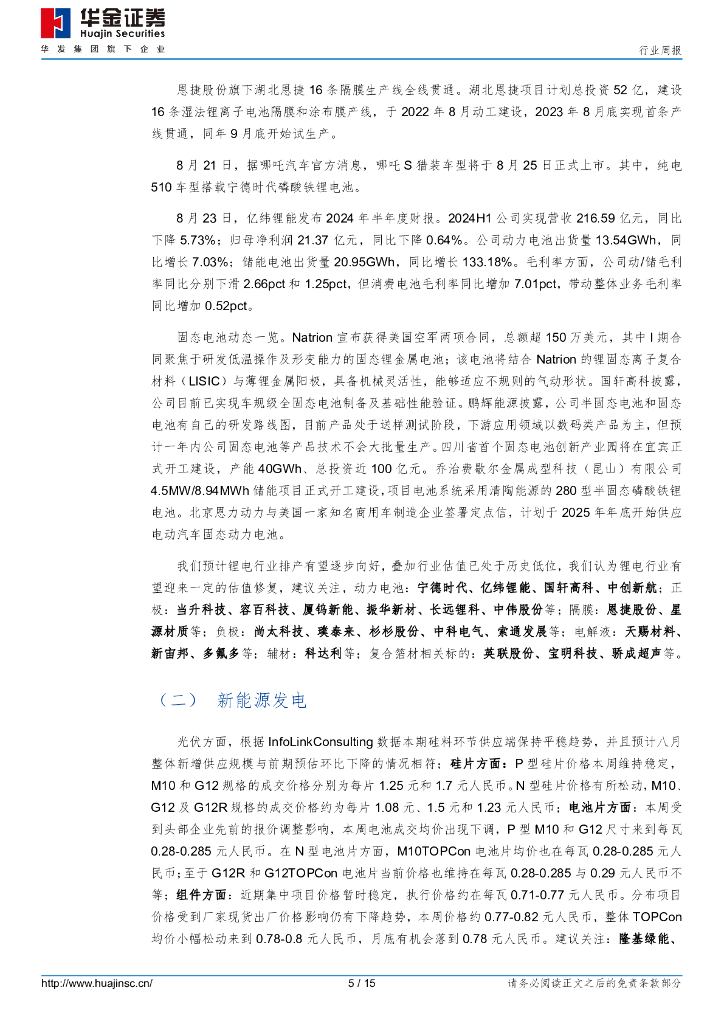 华金证券:电力设备及新能源行业周报:电力设备及新能源固态电池产业化进程提速,能源重点领域大规模设备更新实施方案出台.pdf