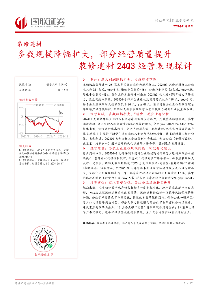 国联证券:装修建材24Q3经营表现探讨:多数规模降幅扩大,部分经营质量提升.pdf