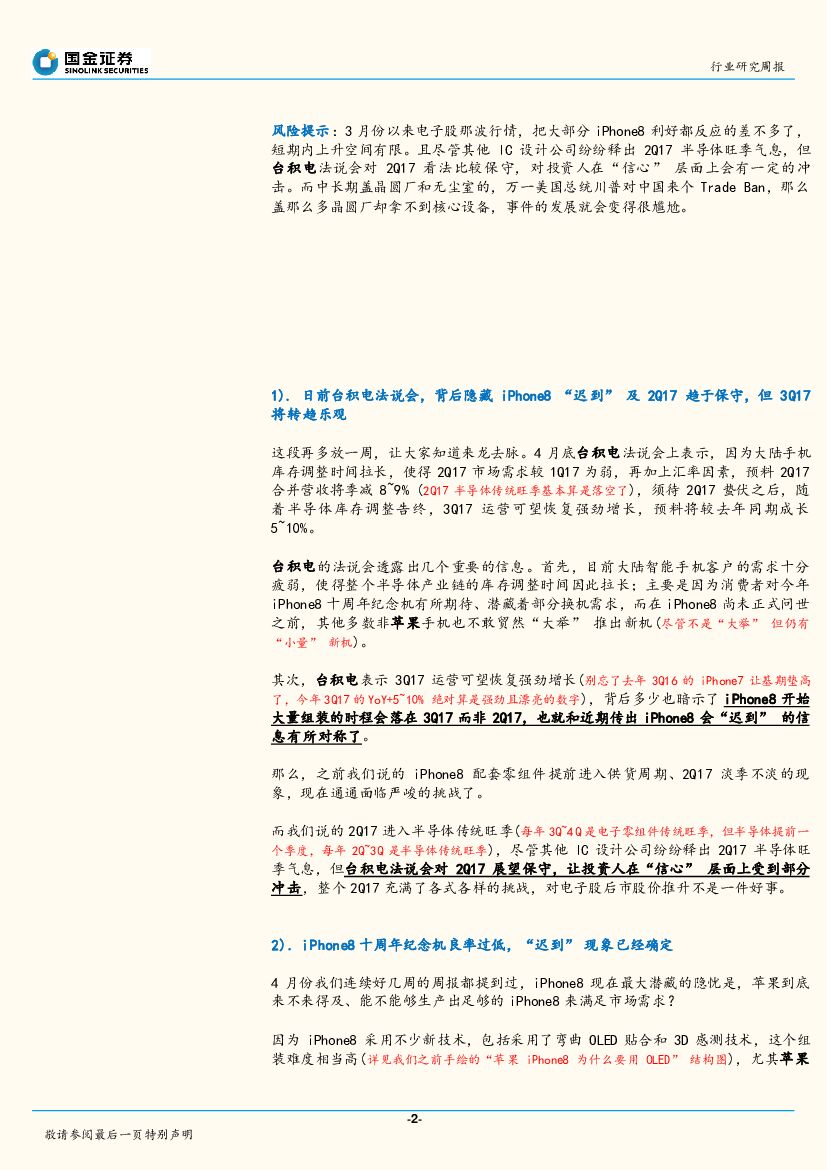 国金证券:电子行业研究周报:五穷六绝宜低配电子股,待6月下旬重新布局以迎接3Q17反弹.pdf