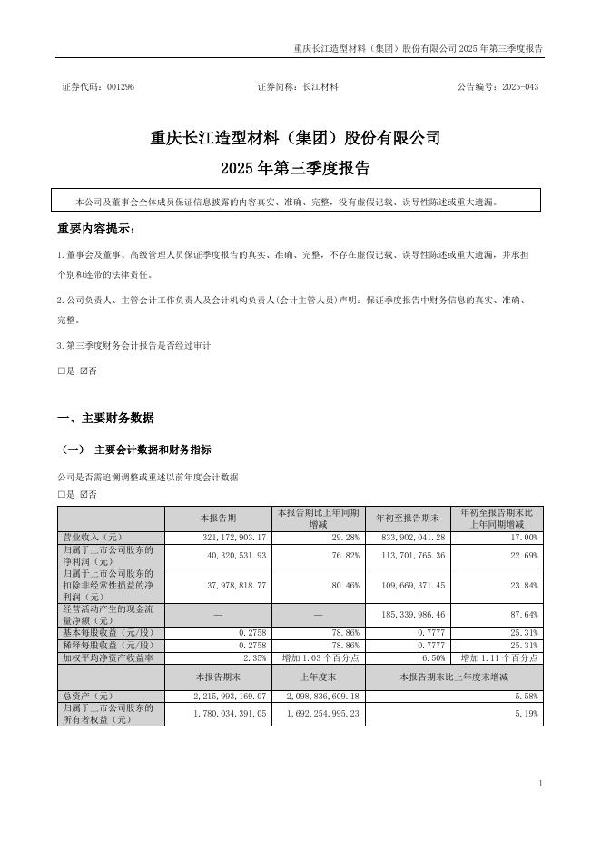 001296-长江材料:2025年三季度报告.pdf