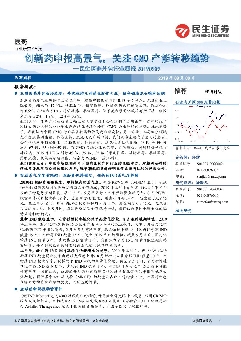 民生证券:民生医药外包行业周报:创新药申报高景气,关注CMO产能转移趋势.pdf