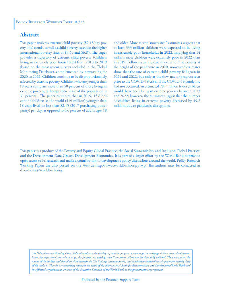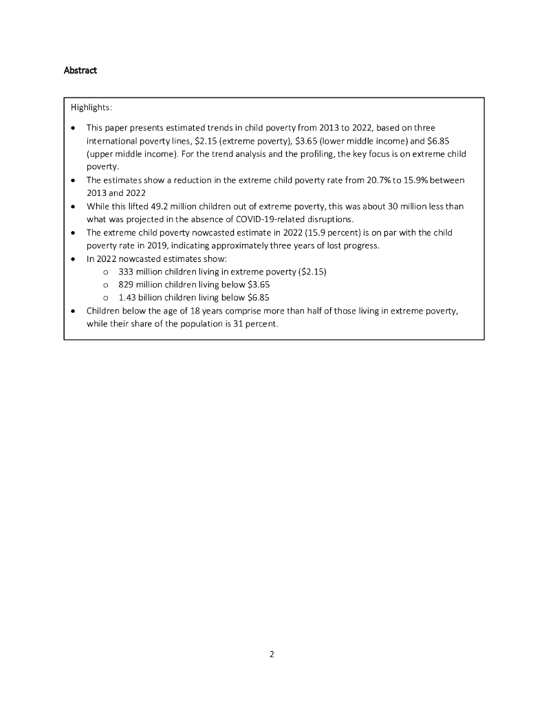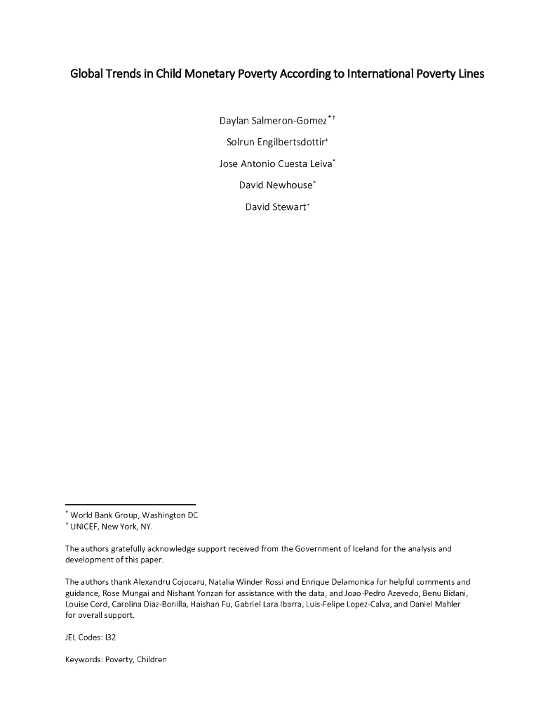 世界银行:根据国际贫困线划分的儿童货币贫困全球趋势(英文版).pdf