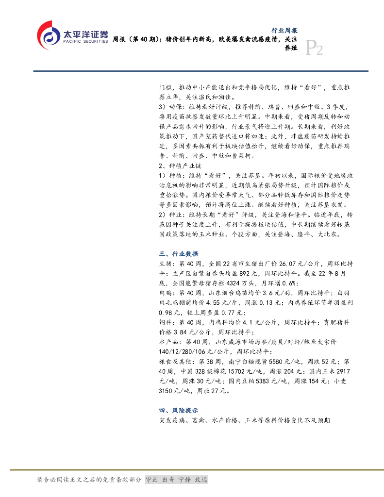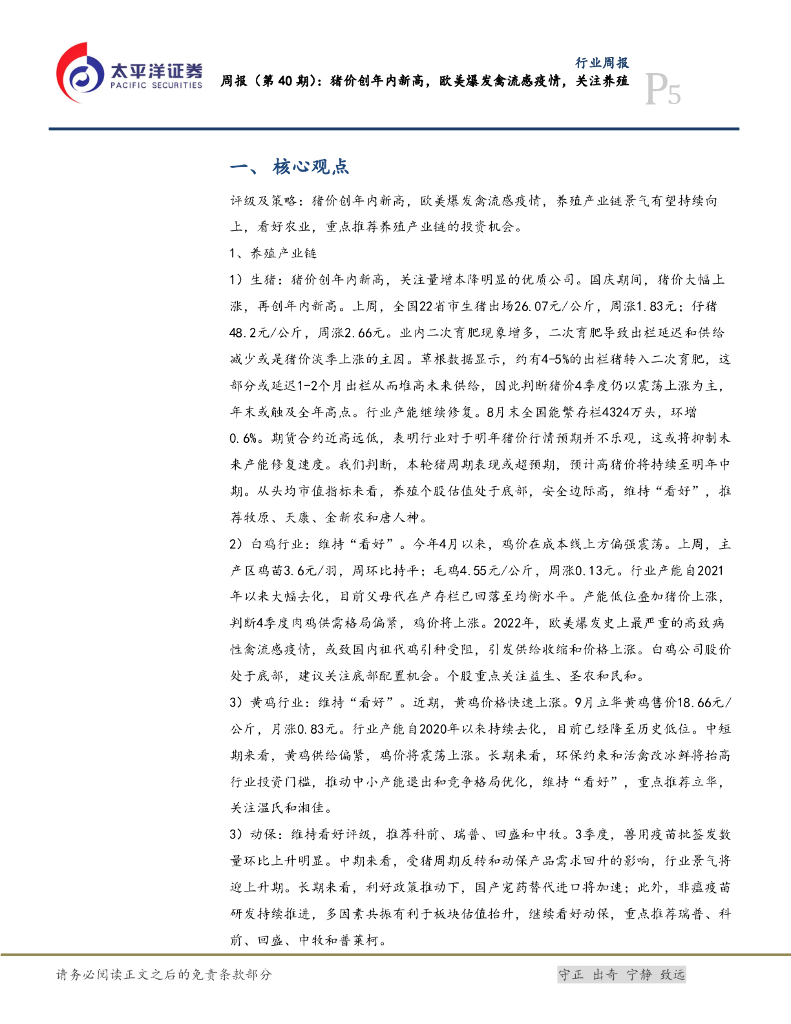 太平洋证券:农林牧渔周报(第40期):猪价创年内新高,欧美爆发禽流感疫情,关注养殖.pdf