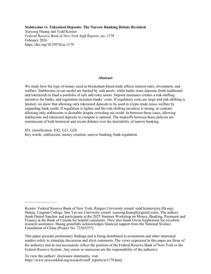 纽约联储:稳定币与代币化存款:重新审视狭义的银行业争论(英文版).pdf