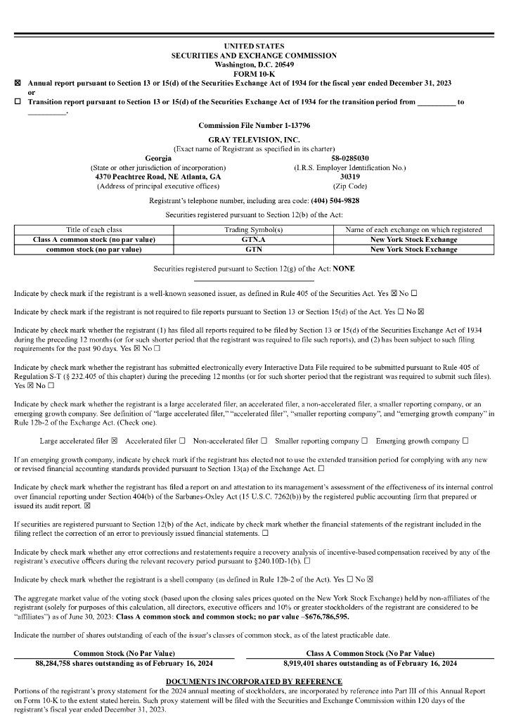 Gray Television Inc.(GTN)2023财年年度报告(英文版).pdf