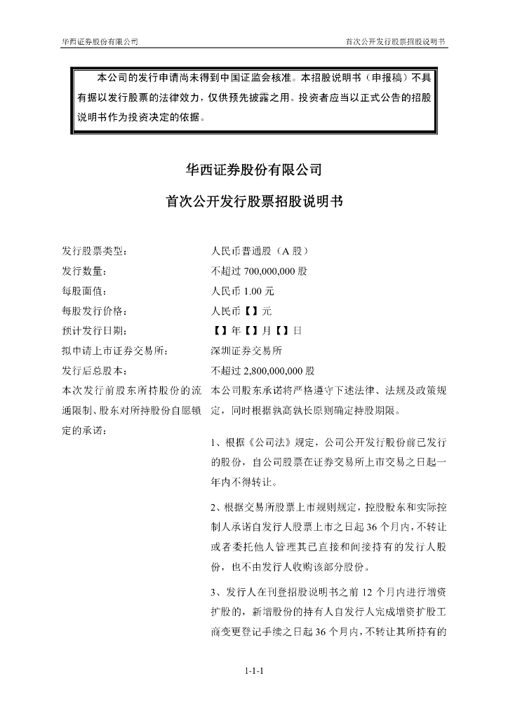 华西证券股份有限公司深交所主板IPO上市招股说明书.pdf