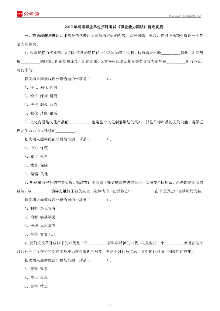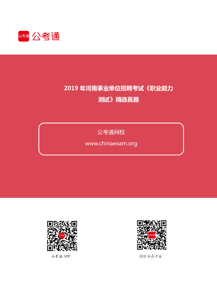 2019年河南事业单位招聘考试《职业能力测试》精选真题.pdf