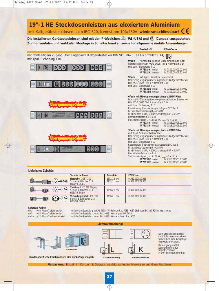 APSA - 27 19”-1 HE Steckdosenleisten aus eloxiertem Aluminium mit Kaltgerätesteckdosen nach IEC 320, Nennstrom 10A/250V wiederanschliessbar! 数据手册.pdf