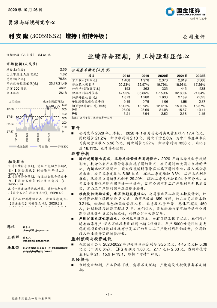 国金证券:利安隆(300596)-业绩符合预期,员工持股彰显信心.pdf