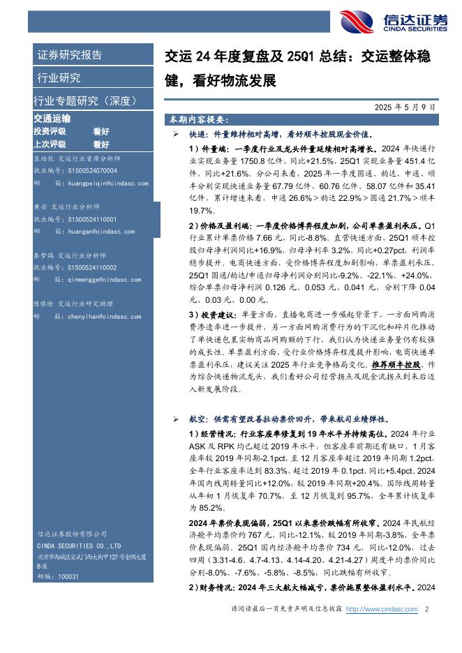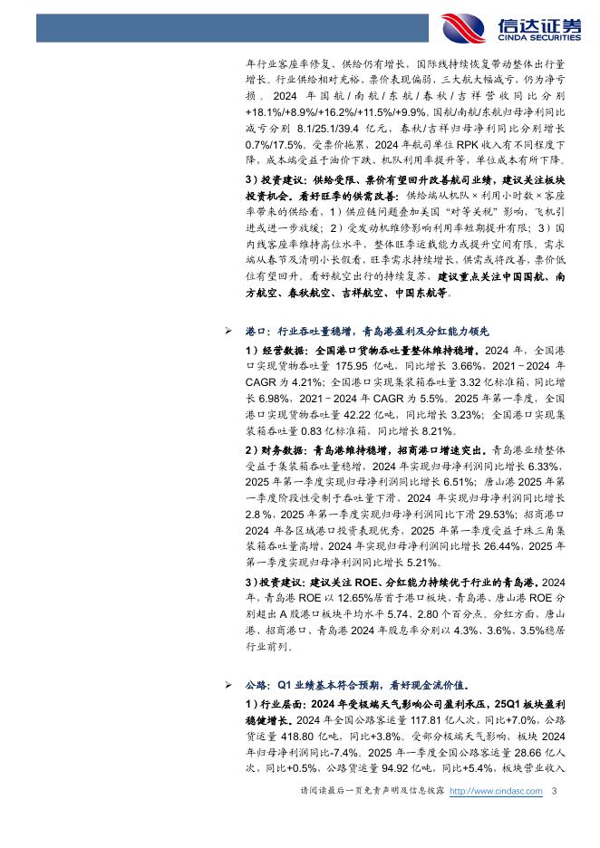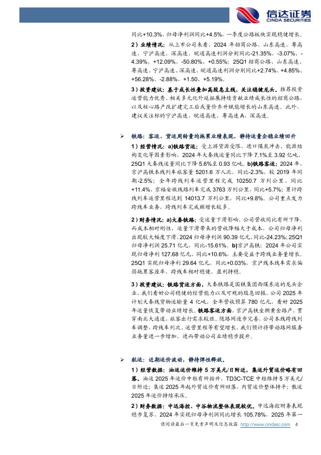 信达证券:交运24年度复盘及25Q1总结:交运整体稳健,看好物流发展.pdf