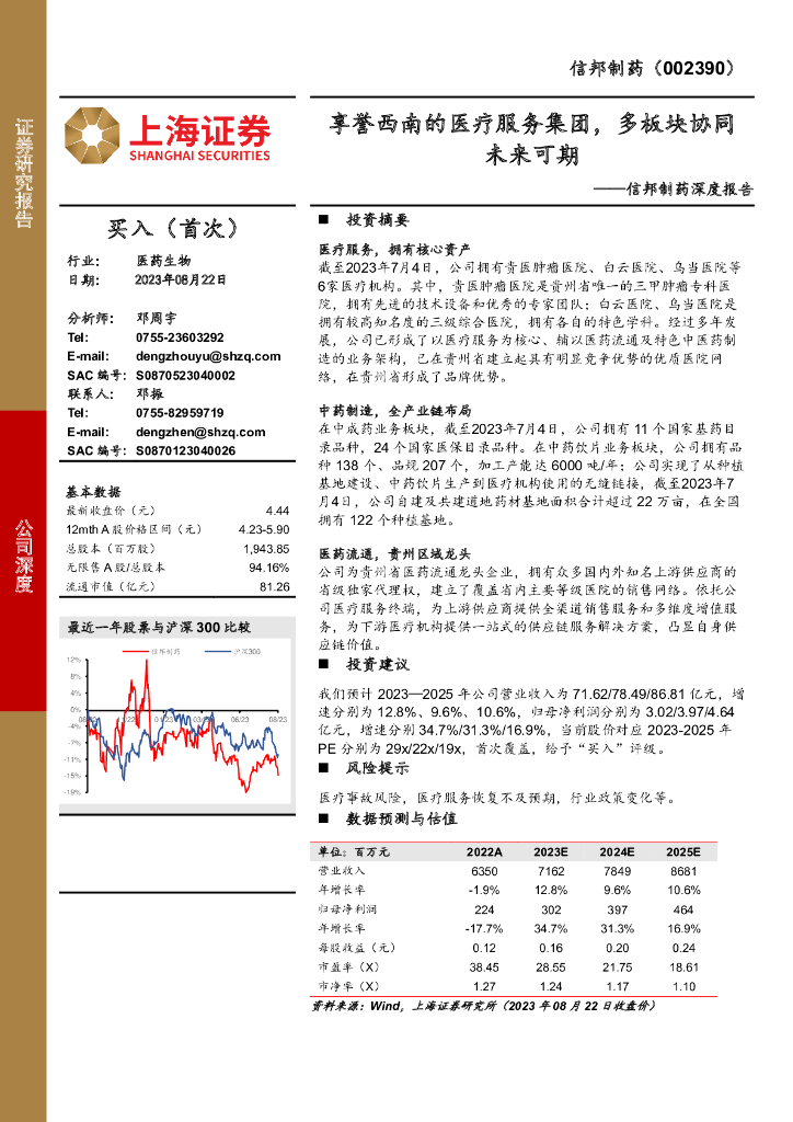 上海证券:信邦制药深度报告:享誉西南的医疗服务集团,多板块协同未来可期.pdf
