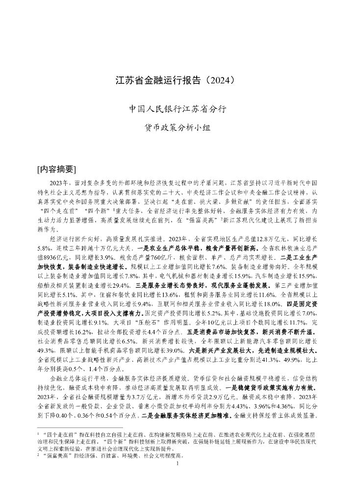 中国人民银行:江苏省金融运行报告(2024).pdf