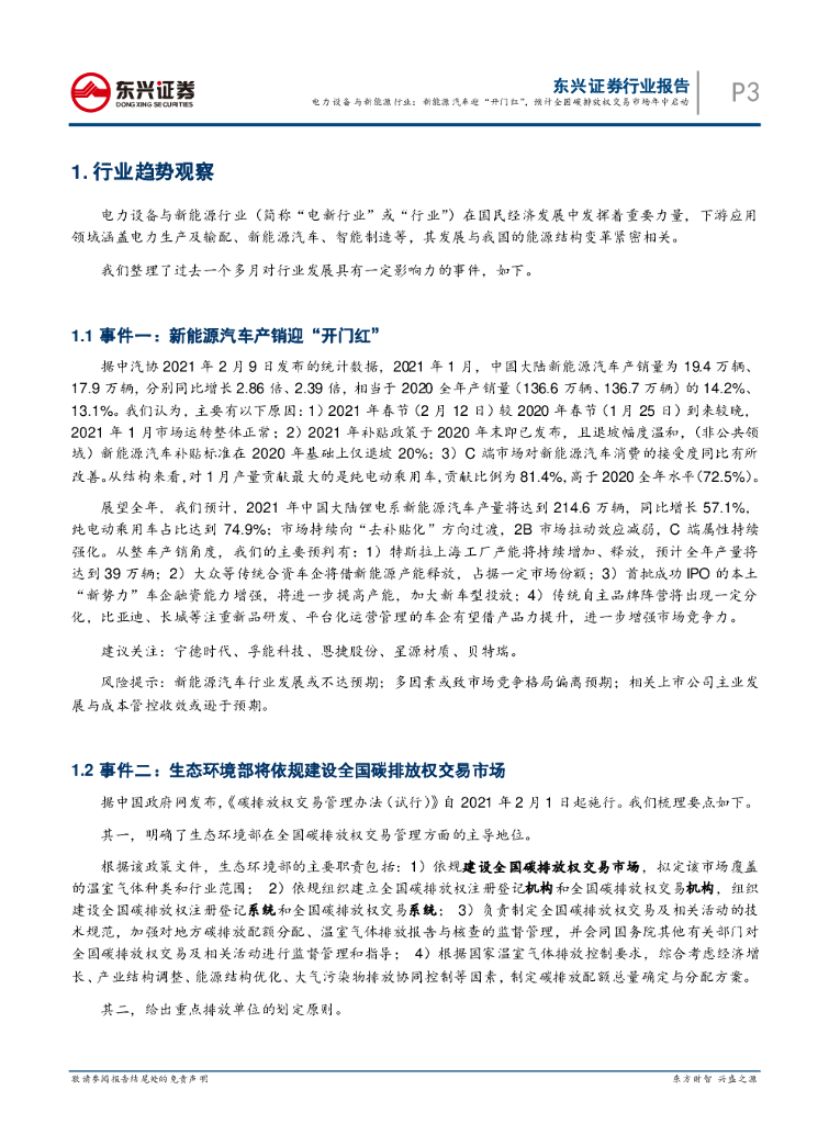 东兴证券:电力设备与新能源行业月报(2021年2月):新能源汽车迎“开门红”,预计全国碳排放权交易市场年中启动.pdf