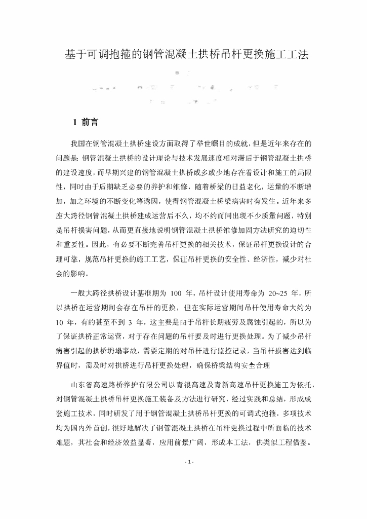 可调抱箍的钢管混凝土拱桥吊杆更换施工工法.pdf