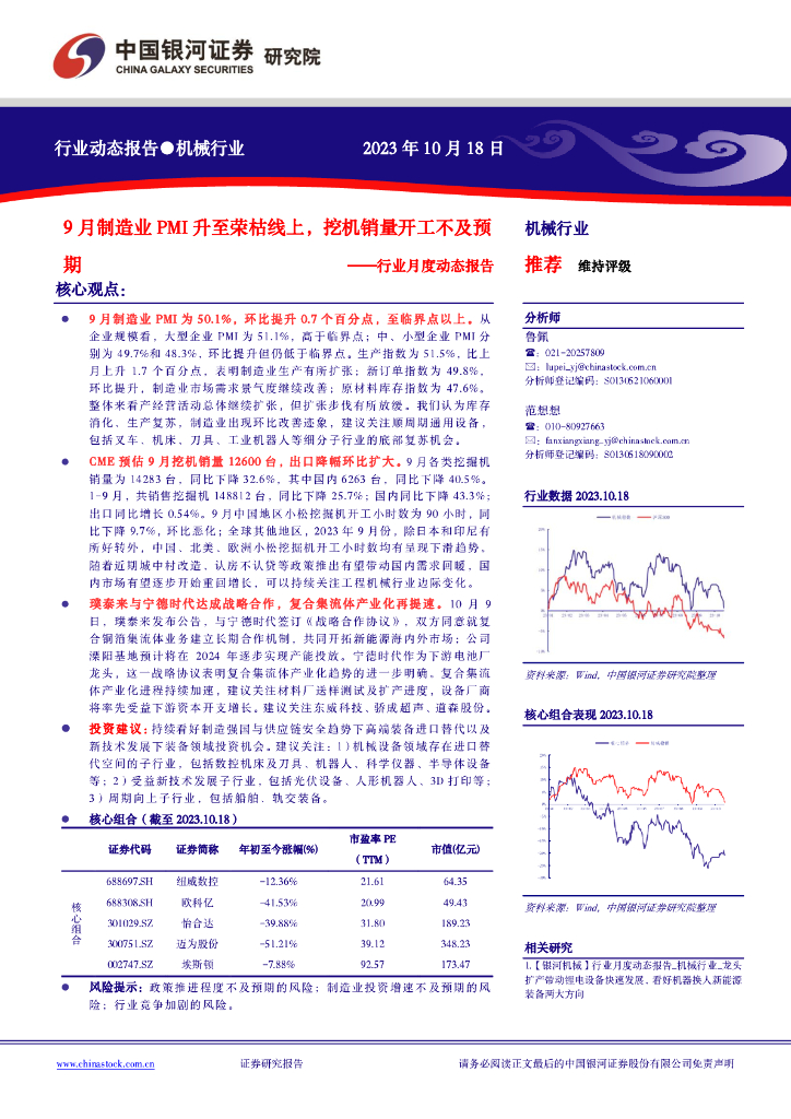 中国银河:机械行业月度动态报告:9月制造业PMI升至荣枯线上,挖机销量开工不及预期.pdf