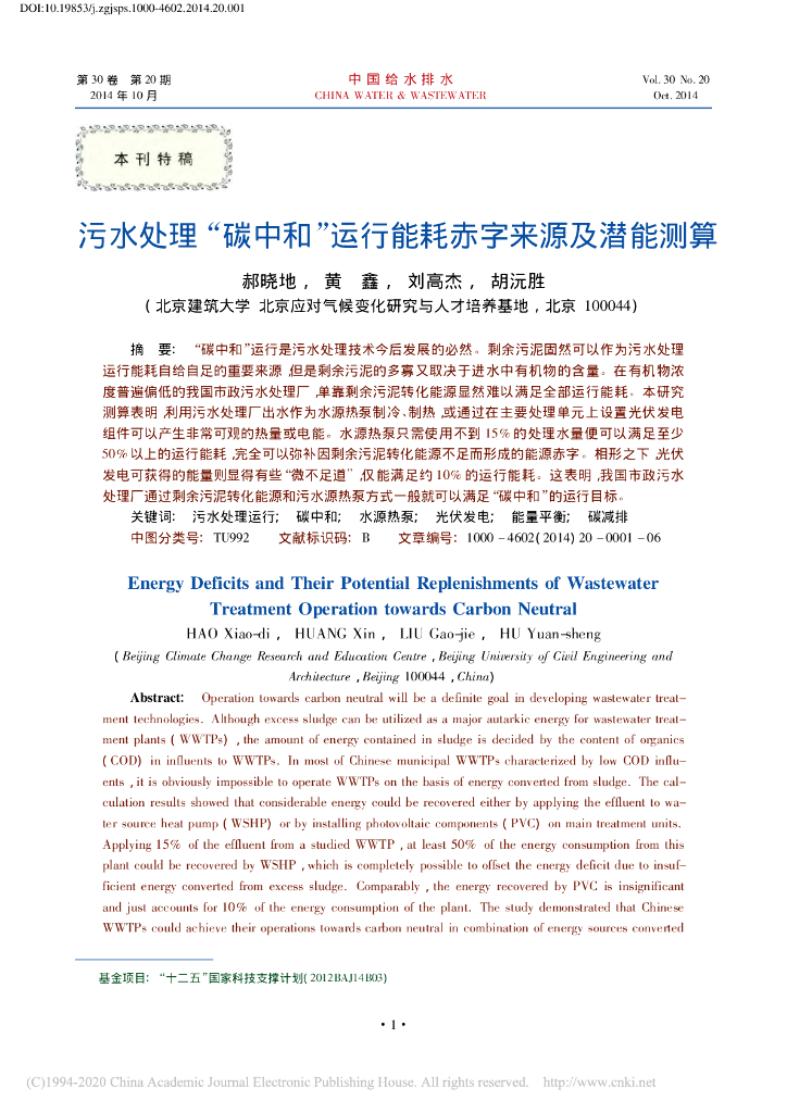 污水处理“碳中和”运行能耗赤字来源及潜能测算.pdf