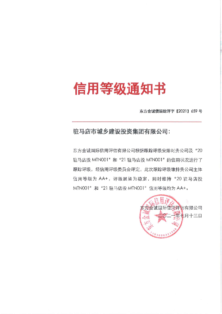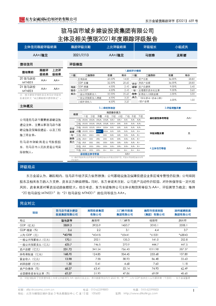 东方金诚:驻马店市城乡建设投资集团有限公司主体及相关债项2021年度跟踪评级报告.pdf