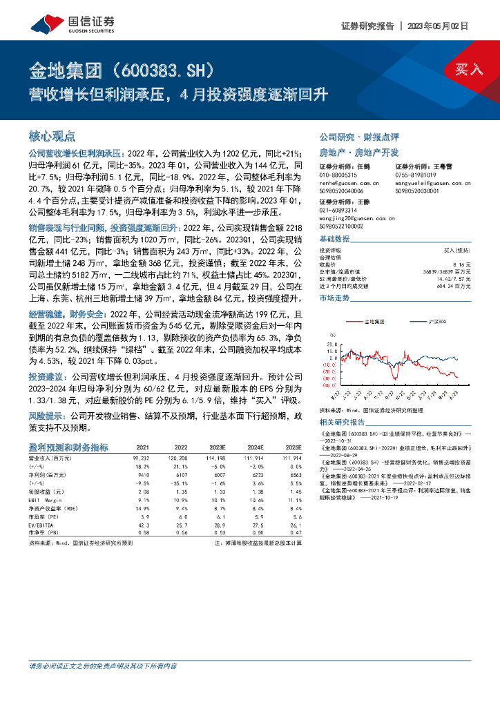 国信证券:金地集团(600383)-营收增长但利润承压,4月投资强度逐渐回升.pdf
